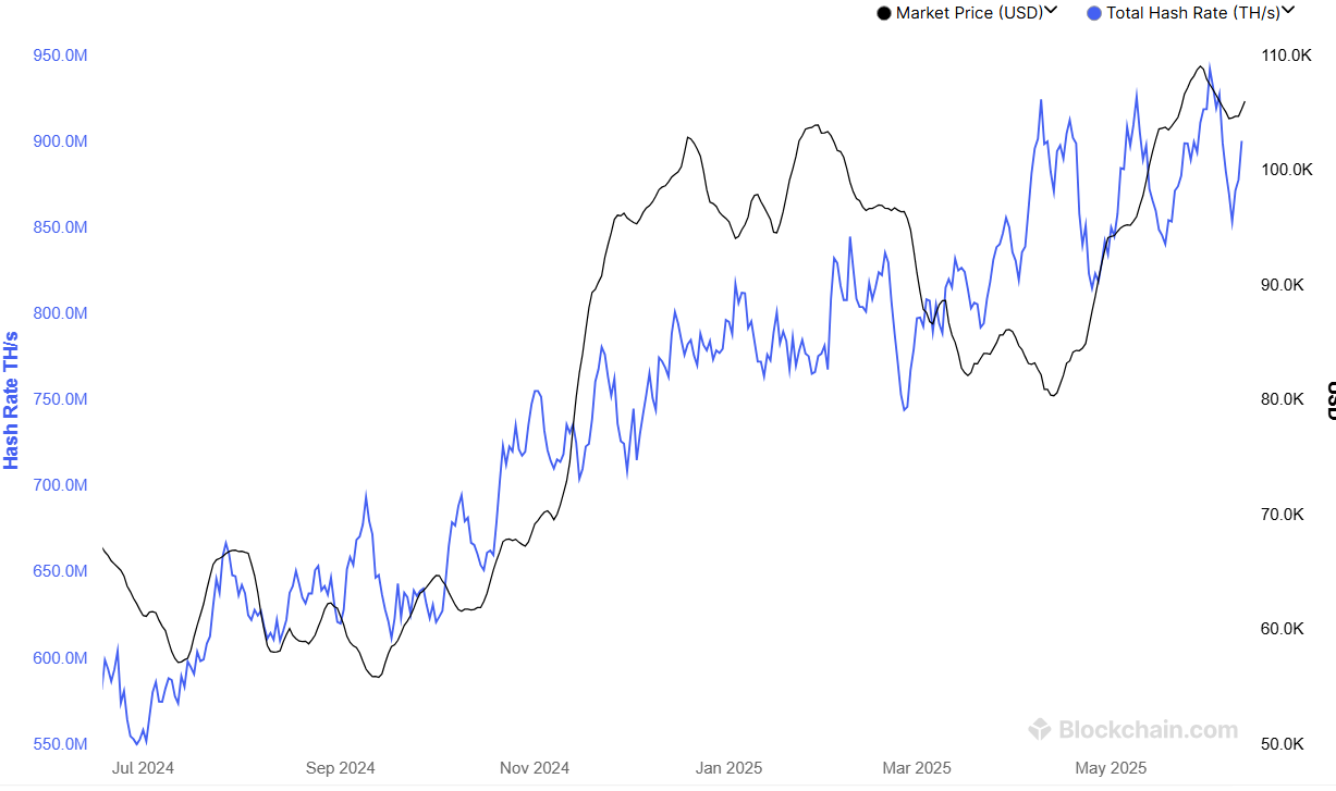 Күрделіліктің өсуі 14 күндік орташа хэшрейтімен 913,54 EH/s жетуімен байланысты, бұл зетахэш межесіне (1 000 EH/s) тек 10%-ға жетпейді.
