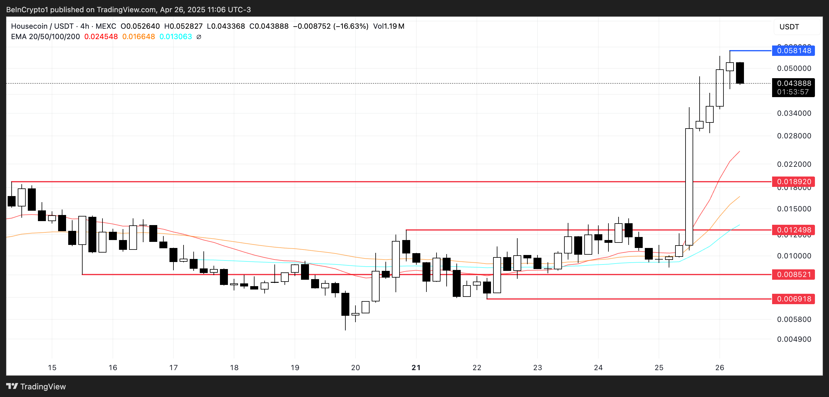 Егер күшті импульс жалғаса берсе, HOUSE жақын арада 0,058 доллар деңгейіндегі қарсылықты сынауы мүмкін, ал бұзу оны алғаш рет 0,060 доллардан және тіпті 0,070 доллардан жоғары итермелеуі ықтимал.