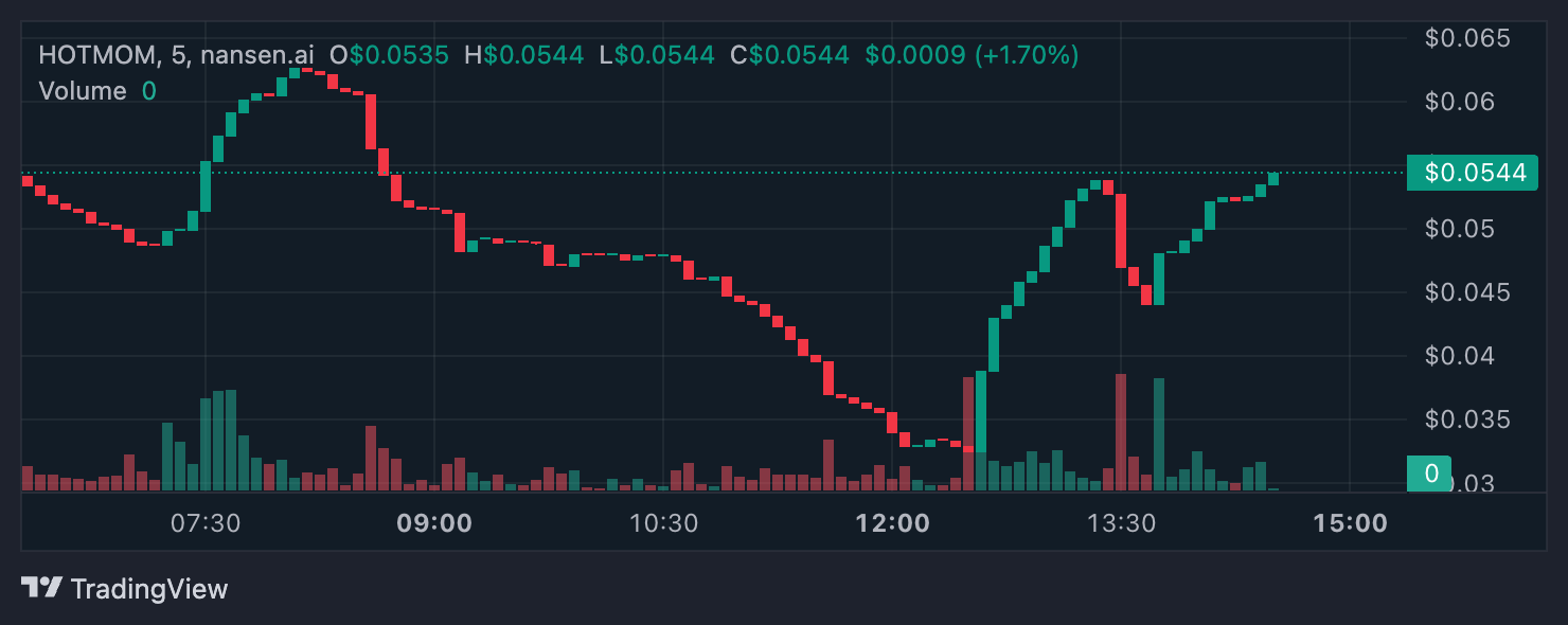 6 500-ден астам иелері және 54 млн доллар нарықтық капитализациясымен ол мемкоиндер кеңістігінде ерте қабылданудың күшті белгілерін көрсетуде. Егер жақсы импульс жалғаса берсе, HOTMOM 100 млн доллар нарықтық капитализациясын сынауға көтерілуі мүмкін.