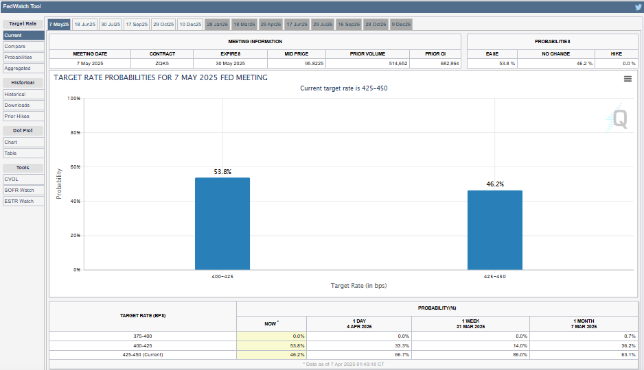 JPMorgan Трамптың тарифтерінен кейін АҚШ-тың рецессиясын болжаған алғашқы Уолл-стрит банкі болып табылады. Банкке сәйкес, ФРЖ келесі отырысқа дейін мөлшерлемелерді төмендетуге мәжбүр болуы мүмкін. Айта кету керек, 9 сәуірдегі хаттамадан кейінгі келесі FOMC отырысы 6-7 мамыр, 2025 жылы өтеді.