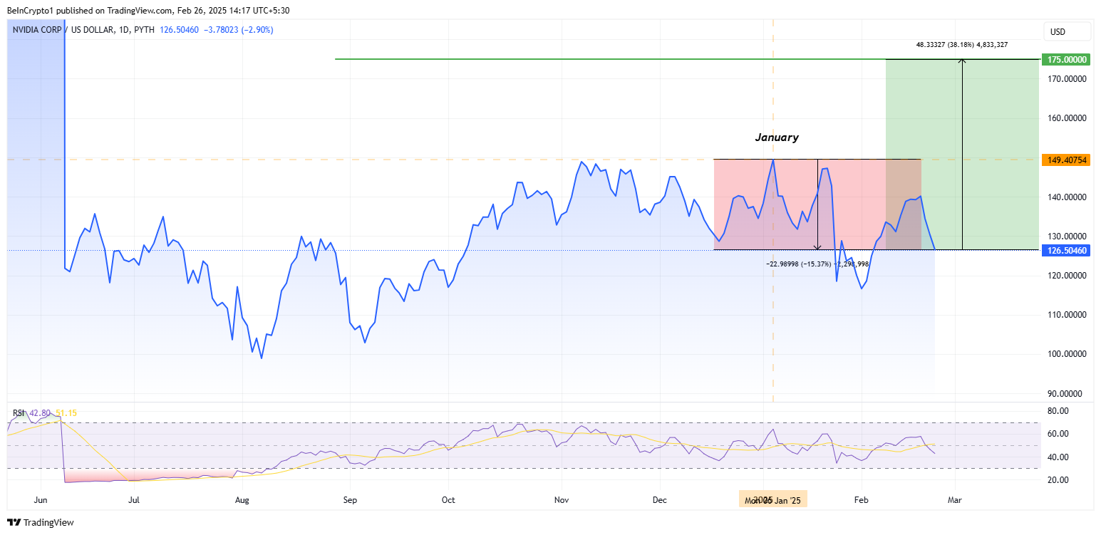 Инвесторлардың сенімі жоғары болып қалуда, 18 сарапшының 17-сі Nvidia-ны «сатып алу» ретінде бағалап, 175 доллар консенсус бағасын ұсынды. Бұл оның қазіргі 126,50 доллар бағасынан 38% әлеуетті өсуін көрсетеді.