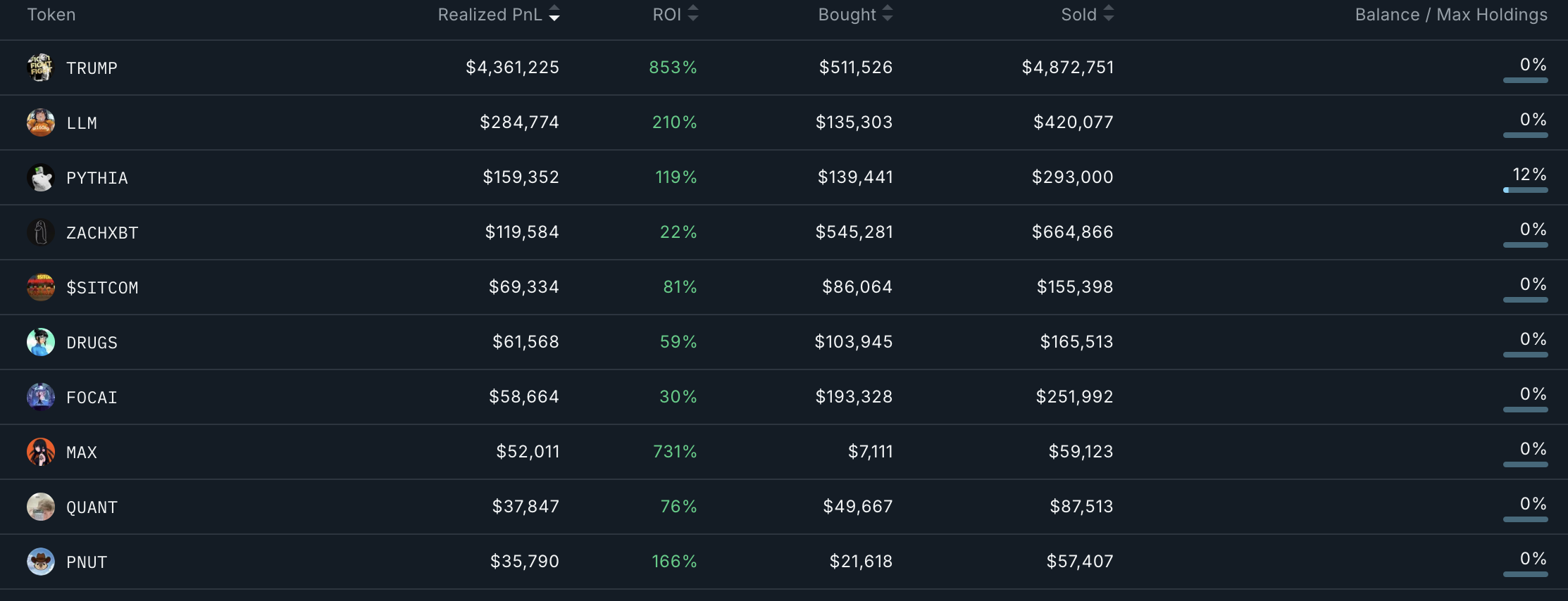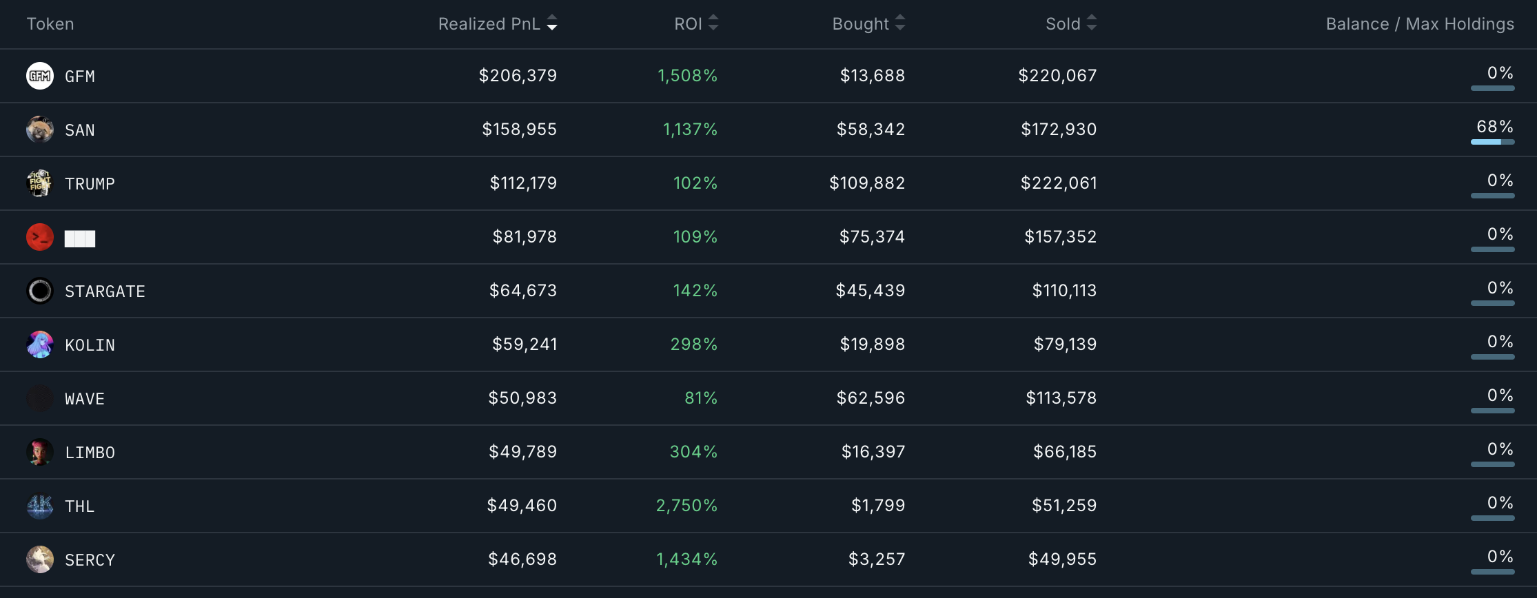 Соңғы 90 күнде ол 205 түрлі токенді саудалап, 58% ұтыс көрсеткішін сақтап, 1,4 млн доллар көлемінде табысқа қол жеткізді.