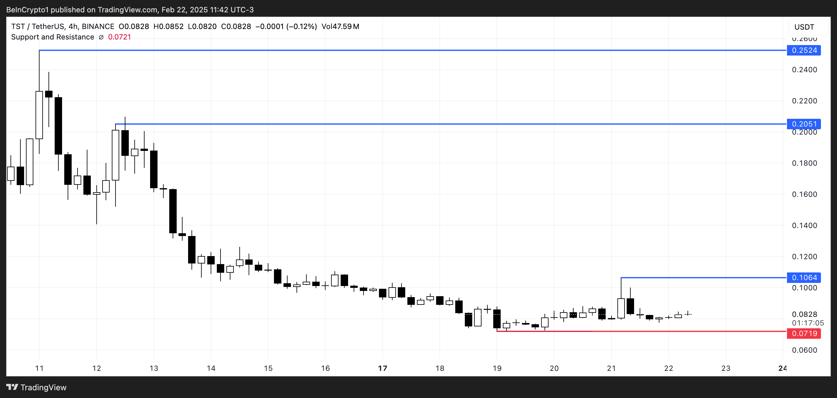 Алайда, егер TST күшті өсу импульсін қайтара алмаса, ол 0,0719 долларда қолдауды сынап, 9 ақпаннан бері ең төменгі деңгейлерге дейін төмендеуі мүмкін.