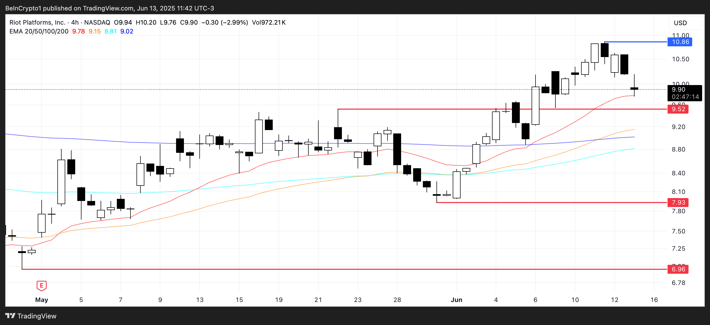 Төмен жағында, әлсіздік жалғасса, RIOT 9,52 долларға қолдауға қарай итермелеуі мүмкін, ал одан төмен бұзылу оны 7,93 долларға жақын терең шығындарға ұшыратуы мүмкін.