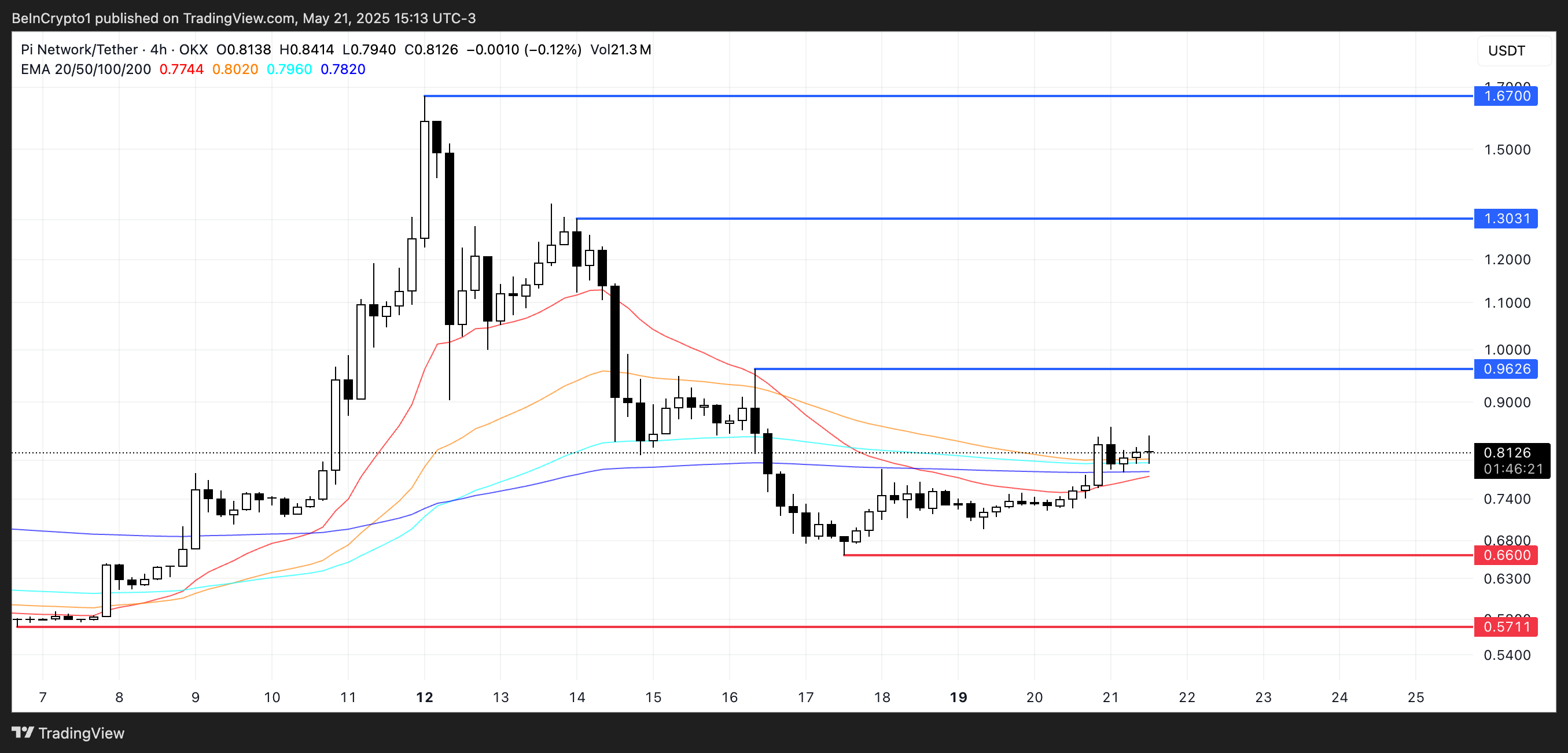 Дегенмен, PI қысқа мерзімді күш белгілерін көрсетуде. Соңғы 24 сағат ішінде шамамен 10%-ға өсіп, $0,80 деңгейінен жоғары көтерілді. Оның нарықтық капитализациясы қайтадан 6 млрд долларға жақындап, EMA сызықтары жақын арада алтын крест қалыптасуы мүмкін екенін болжайды.
