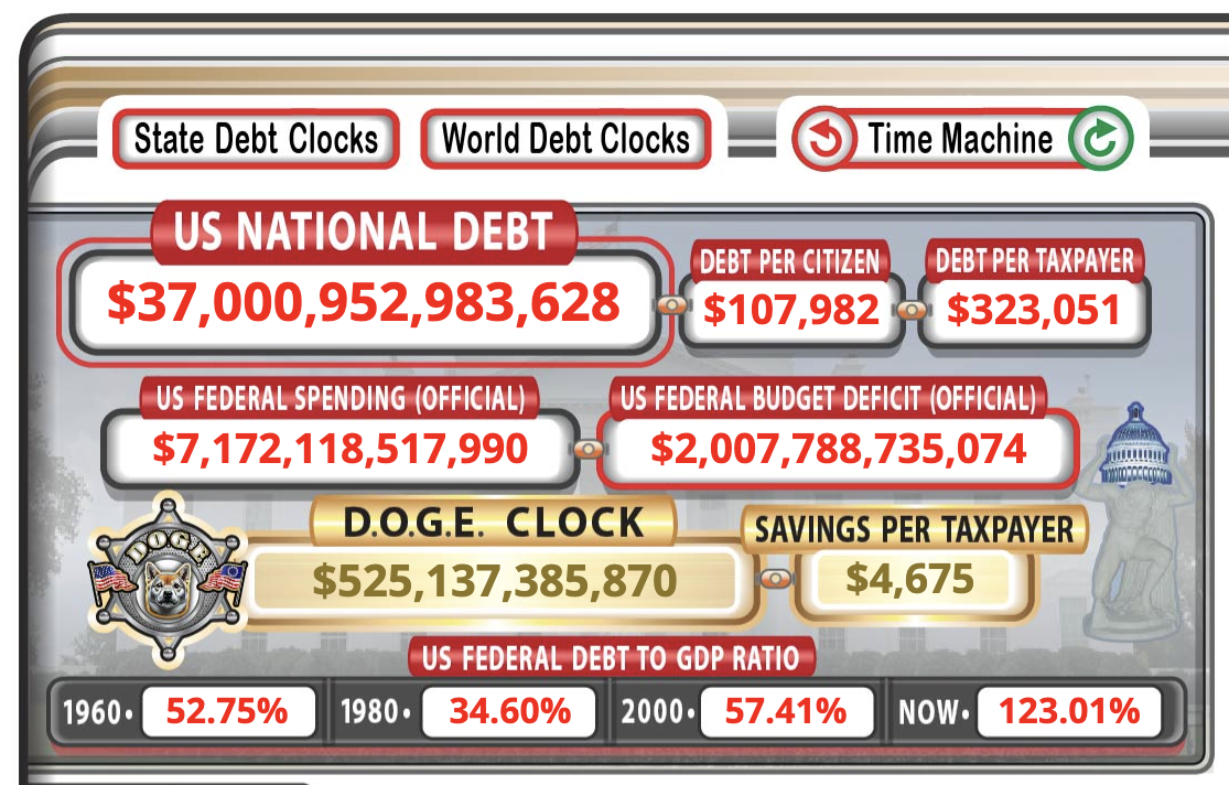 АҚШ Қарыз Сағатының соңғы деректеріне сәйкес, әрбір АҚШ азаматы қазір 107 982 доллар қарыз жүктемесін көтереді. Сонымен қатар, әрбір салық төлеушінің міндеттемесі 323 051 долларды құрайды.