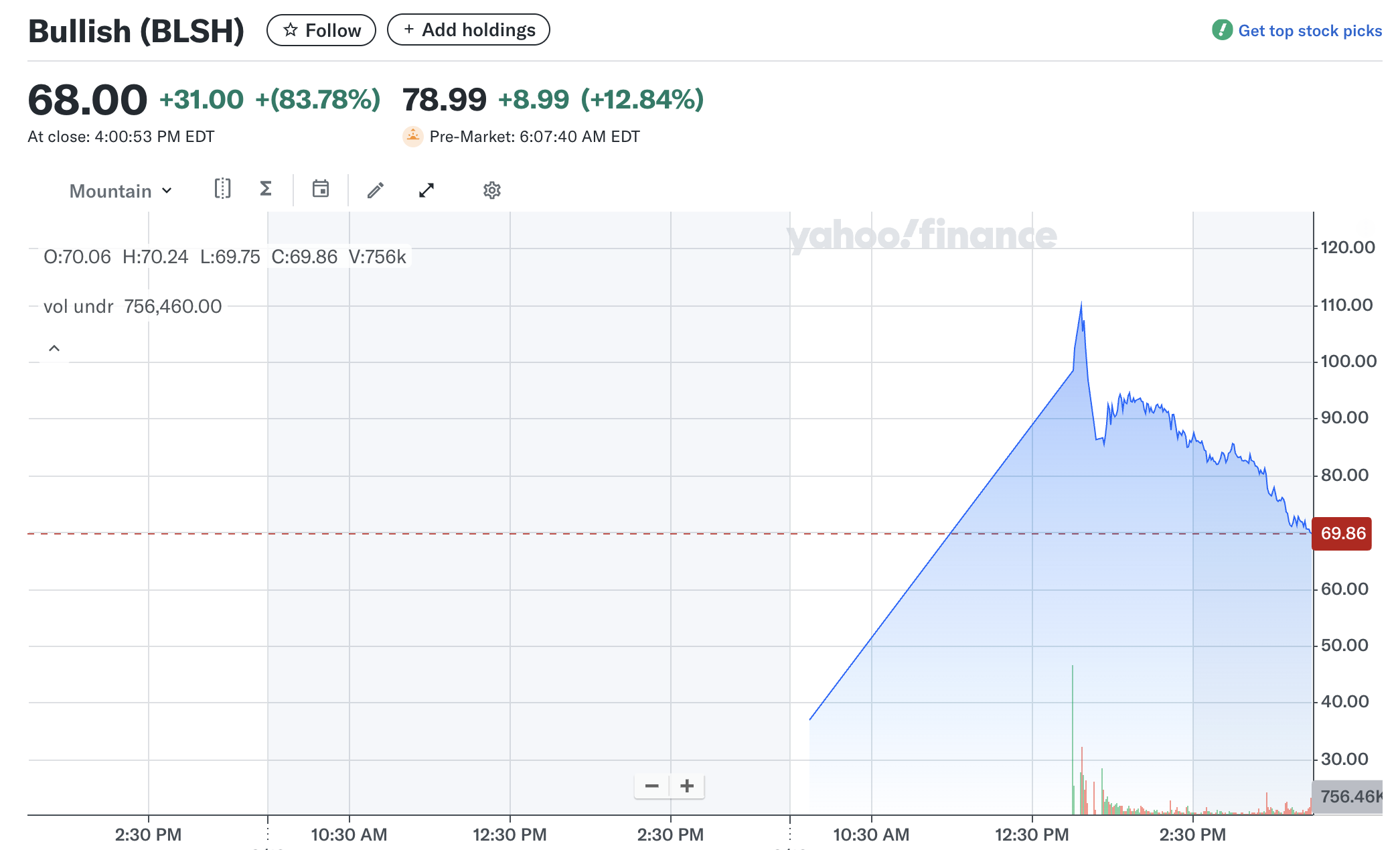 Yahoo Finance деректеріне сәйкес, акцияның нарық жабылуындағы бағасы 68 доллар болып, IPO бағасынан 83,78%-ға өсті. Өсу алдын ала нарықтық саудада да жалғасып, BLSH акциялары 12,84%-ға қымбаттады.