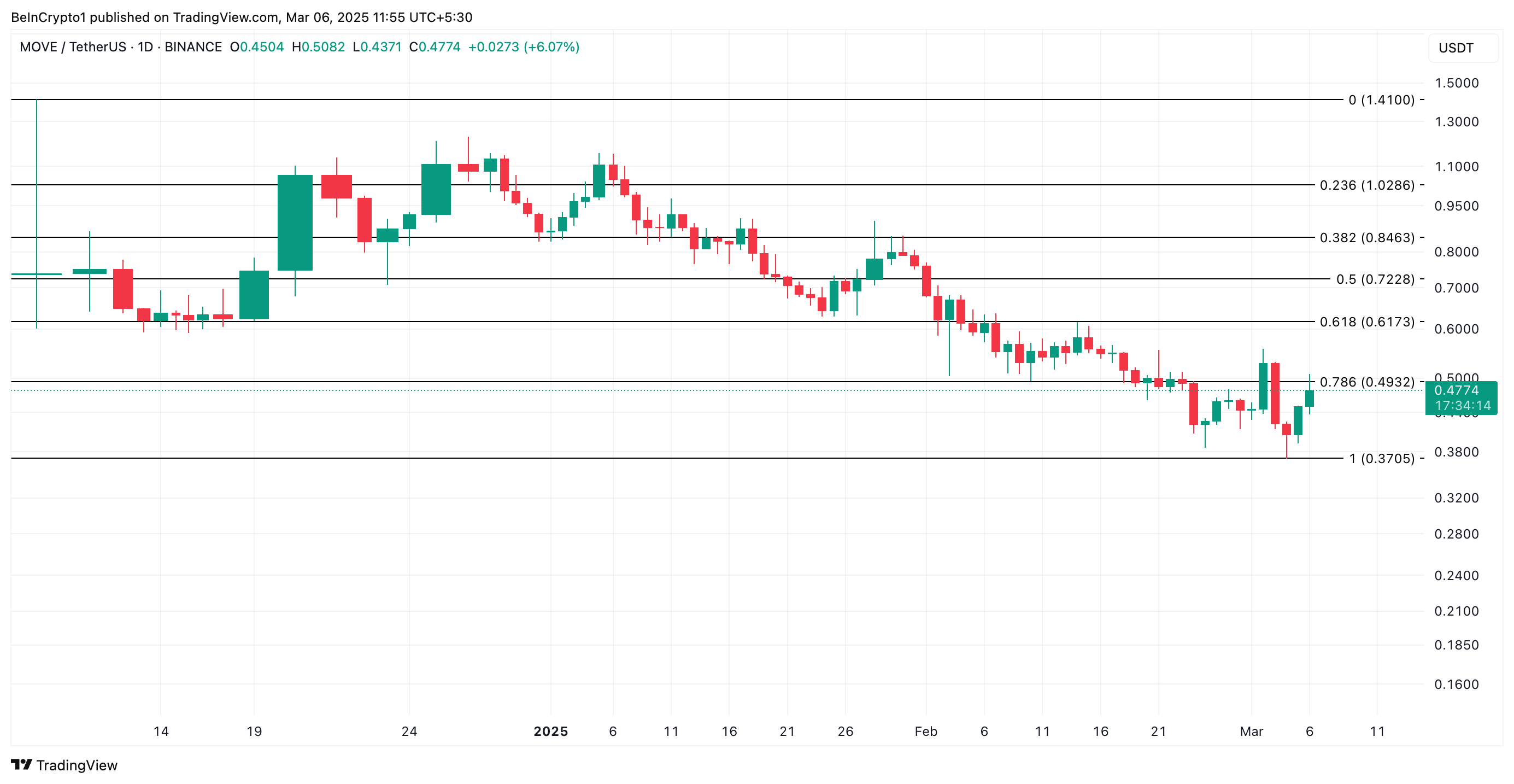 Өткен аптадағы нарықтың кең ауқымды құлдырауы көптеген альткоиндерді құлдырауға ұшыратты, және Movement-тің MOVE атты жергілікті токені де ерекшелік болмады. Сейсенбі күні токен сату қысымы күшейген сайын тарихи минимумға (ATL) дейін құлдырады.
