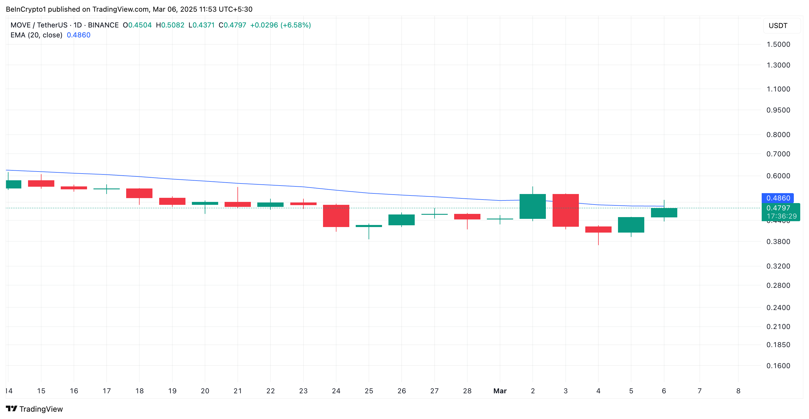 Алайда, нарық қатысушылары бұл құлдырауды сатып алу мүмкіндігі ретінде көріп, сұраныстың артуына және оның құнының өсуіне әкелді. Соңғы 24 сағат ішінде MOVE күрт қалпына келіп, 25% өсті, бұл оны күннің нарықтағы ең үлкен өсіміне айналдырды.