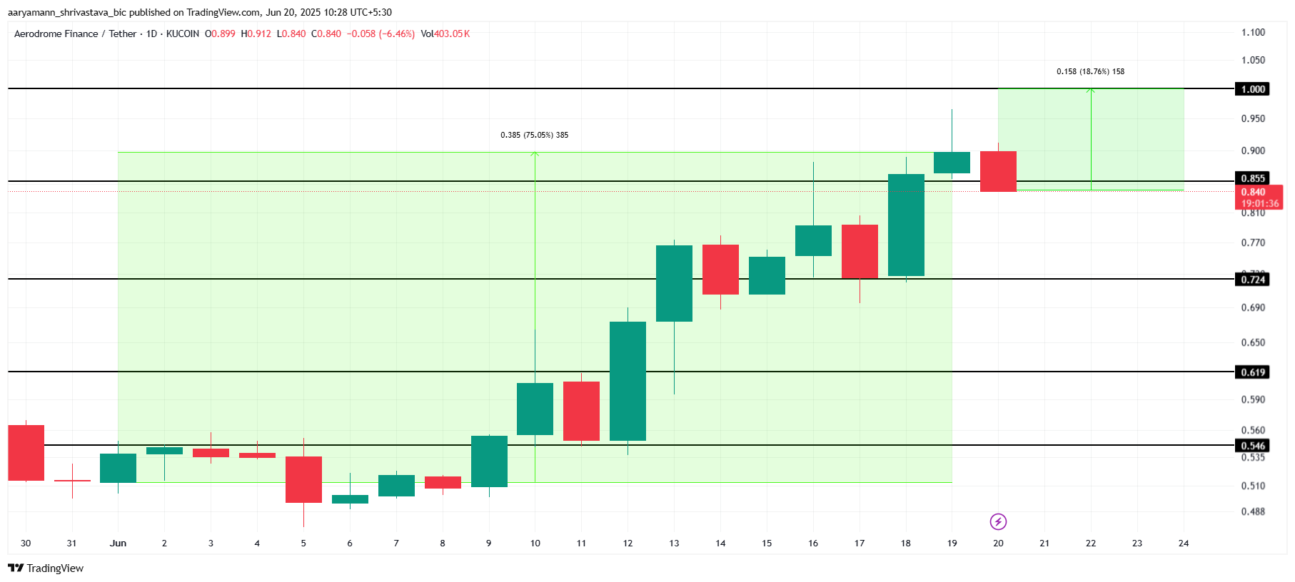 AERO айдың басынан бері 75%-ға өсті және қазір 0,85 доллар қарсылық деңгейінің астында 0,84 долларда саудалануда. Альткоин осы деңгейді қолдау ретінде қамтамасыз етуге тырысуда, бұл оның өсу үрдісін жалғастыру үшін маңызды болады. Егер бұл қолдау сақталса, AERO одан әрі баға өсімін көре алады.