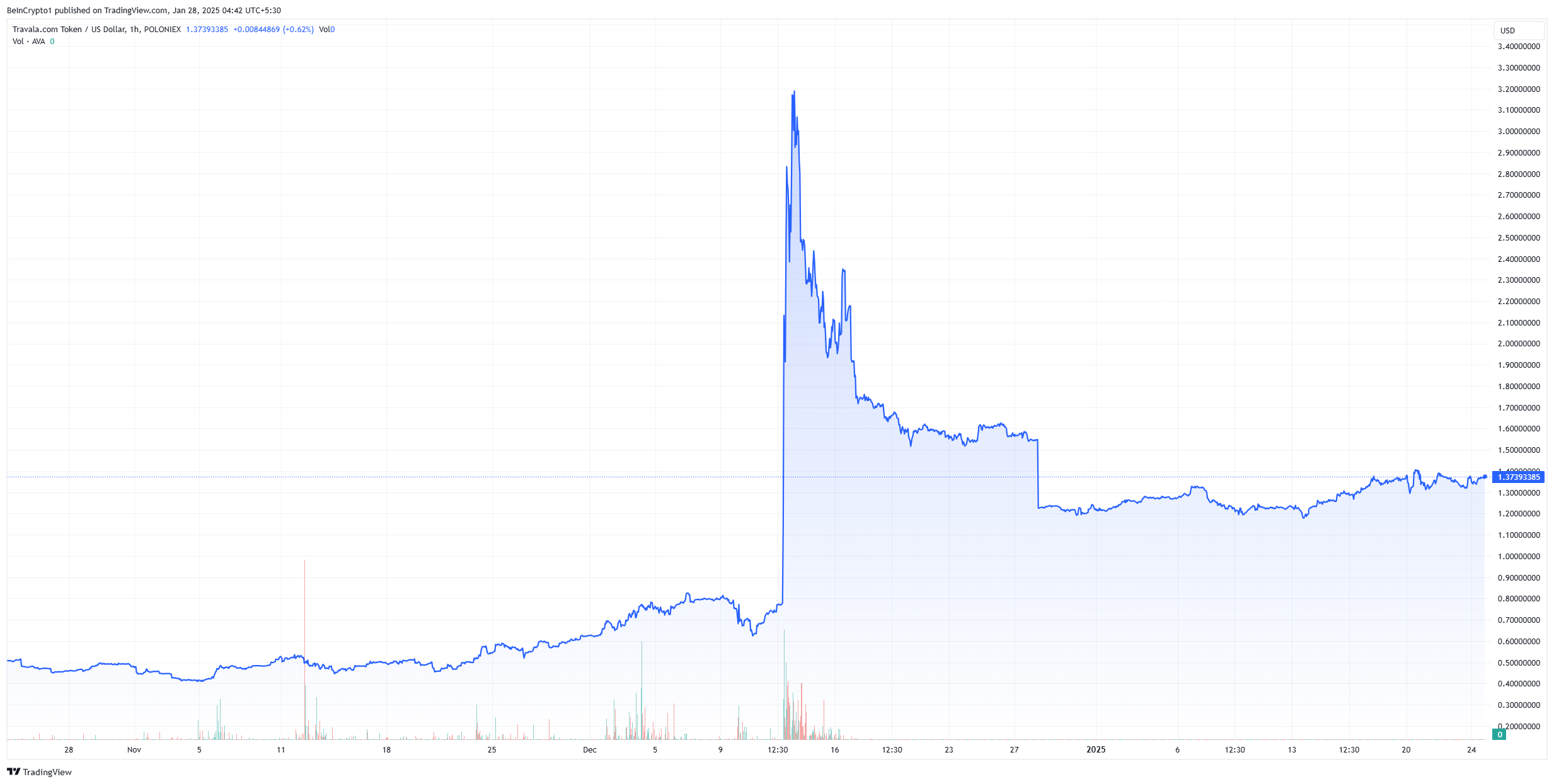 Алайда, рекордтық раллиден кейін, Travala-ның AVA бағасы импульсті сақтауда қиындық көрді. Токеннің нарықтық капиталы 13 желтоқсандағы 180 млн доллар шыңынан 48,7 млн долларға дейін төмендеді.