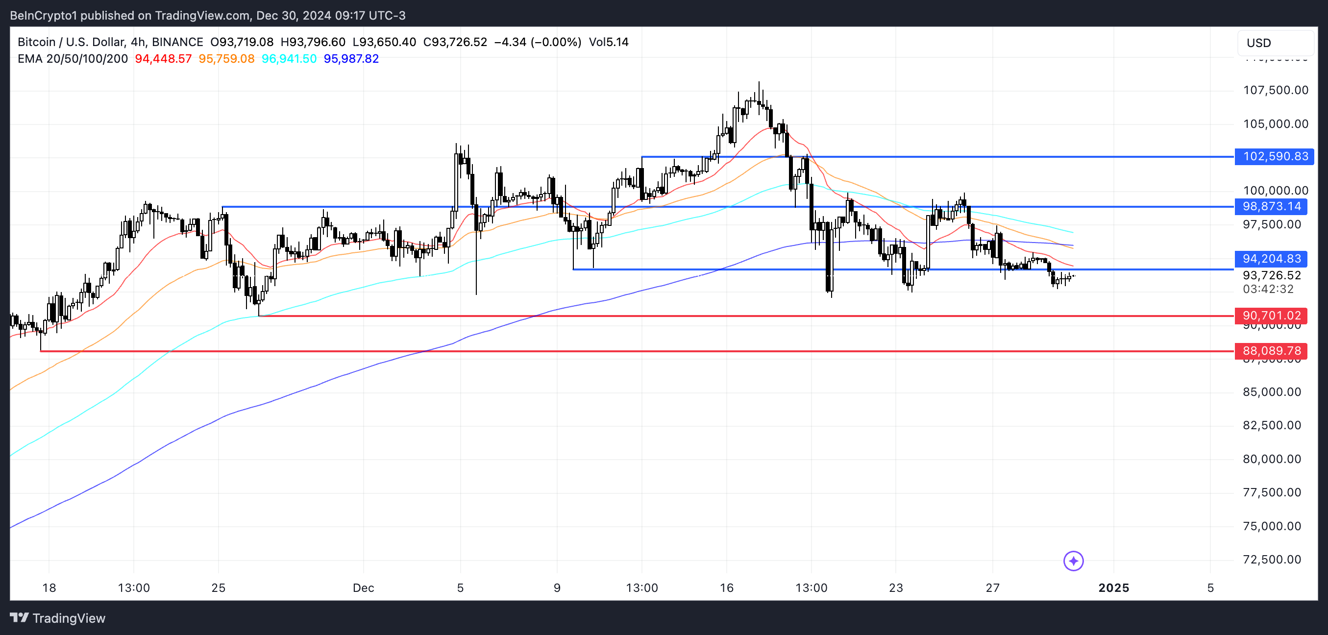 Биткоин (BTC) 17 желтоқсанда рекордтық деңгейге жетті, бірақ содан бері $100,000-нан төмен түсті. ADX сияқты негізгі көрсеткіштер және сақтықпен әрекет ететін киттердің белсенділігі төмендеу үрдісінің әлсіреуін көрсетеді.