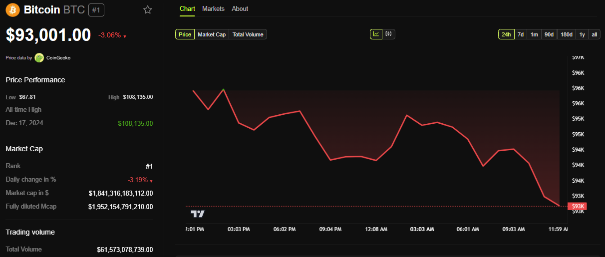 BeInCrypto деректеріне сәйкес, BTC жазу кезінде 93,001 долларға сатылып жатыр, бейсенбі сессиясы ашылғаннан бері 3%-дан астам төмендеді. Трамптың саясаты алдағы айларда қалыптасқан сайын, Федтің тепе-теңдік әрекеті дәстүрлі және крипто нарықтары үшін басты назарда қалады.