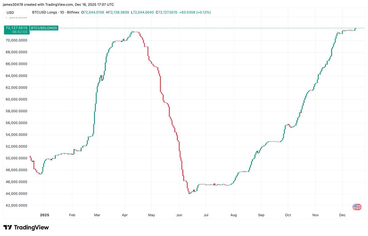 Тарихта Bitfinex long позициялары иінтіректі стратегиялық қолданып жүрген трейдерлермен байланысты болған. Әдетте олар өсім артқан кезде емес, коррекциялар кезінде позицияларын арттырады.