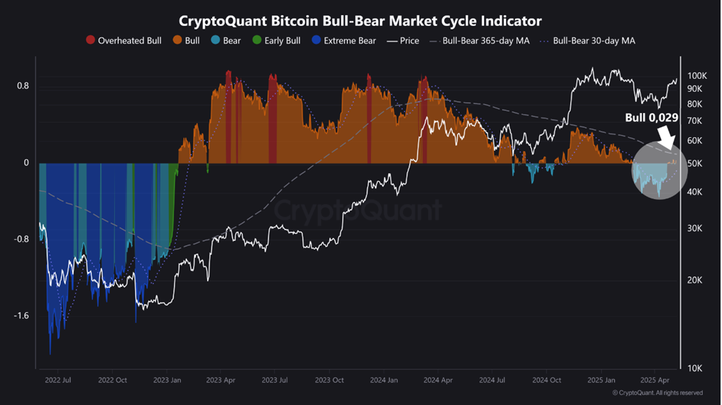 CryptoQuant-тың бұқа-аю нарық циклінің индикаторы крипто нарығындағы бұқа және аю фазаларын анықтауға арналған және жақында оң белгілер көрсетті.