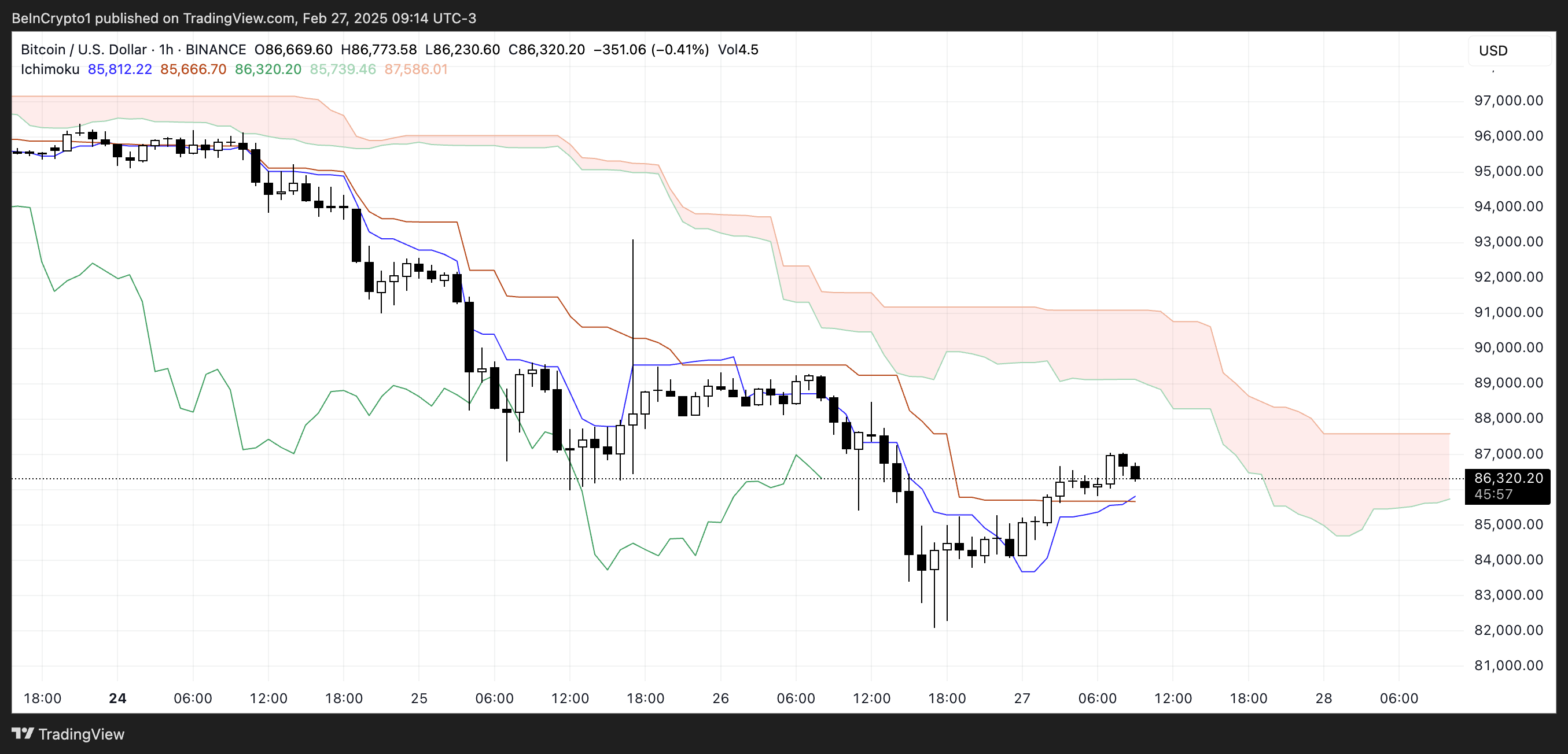 Bitcoin Ichimoku Cloud аю нарығының орнатылымын көрсетеді