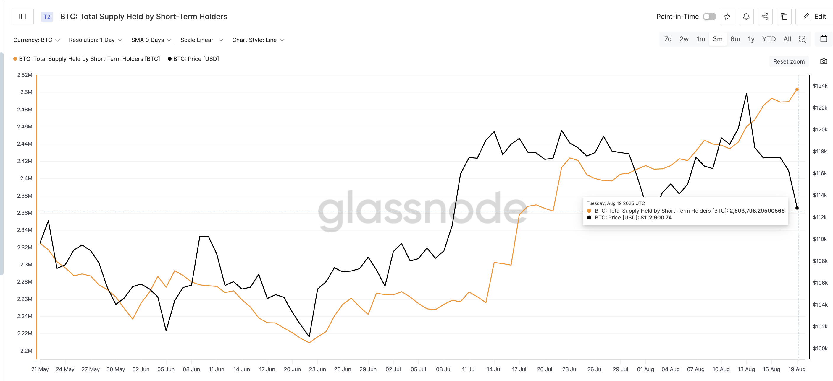 Қысқа мерзімді иелердің жұмсалған шығыс пайда коэффициенті (SOPR) 18 тамызда бір айдан астам уақыт ішіндегі ең төменгі нүктеге түсті. Бұл, орташа алғанда, осы топ жұмсаған монеталар сатып алынғаннан арзанға сатылғанын білдіреді. Қарапайым тілмен айтқанда: олар шығынға сатуда.