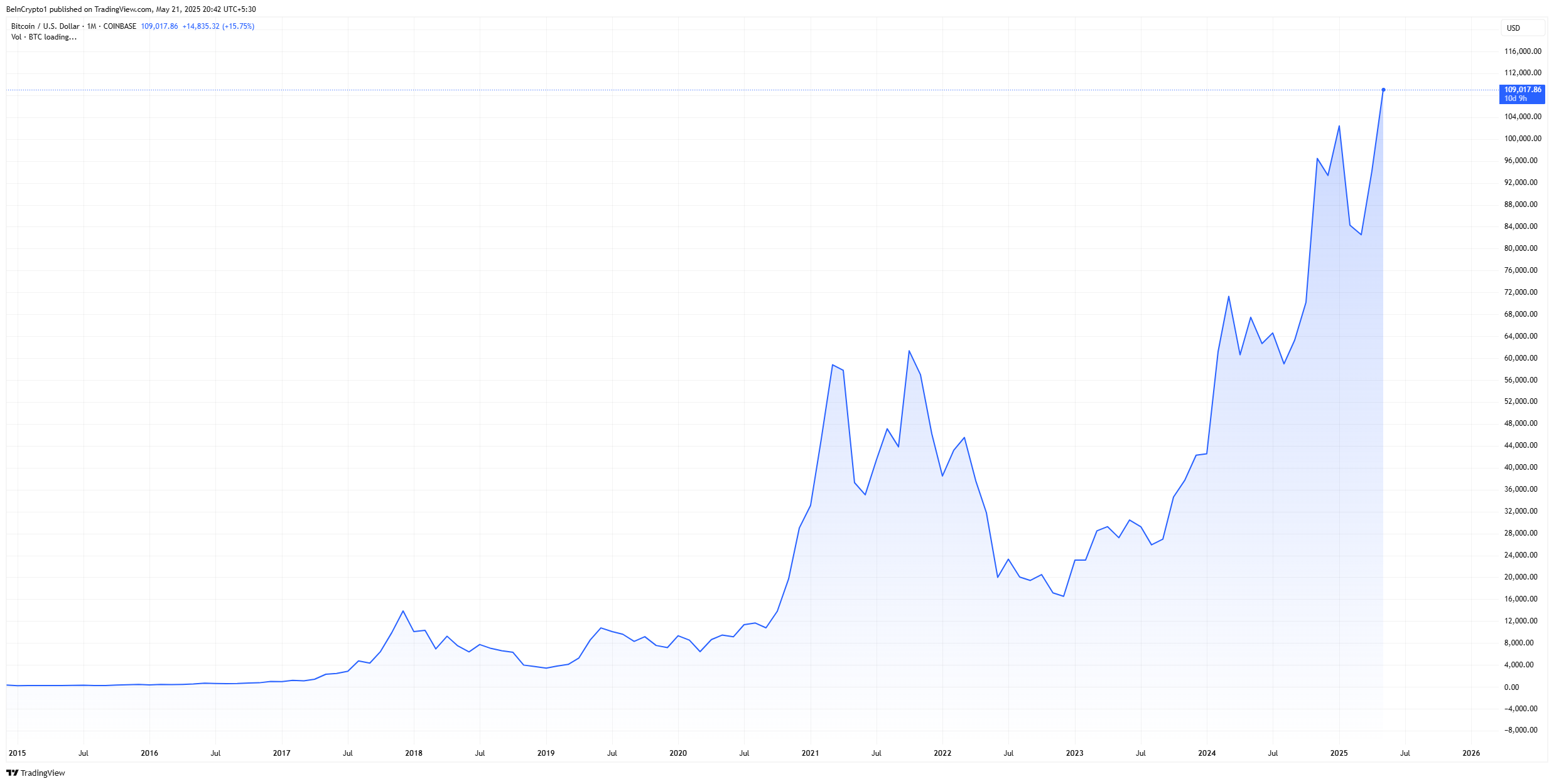 Бүгін Bitcoin бағасы 109 220 долларға жетіп, жаңа тарихи максимум орнатты, бұл инвесторлардың төрт айлық күтуін аяқтады. Бұрынғы 108 900 долларлық максимумды бұзғаннан кейін, BTC алдағы күндері өсуін жалғастыруы ықтимал.