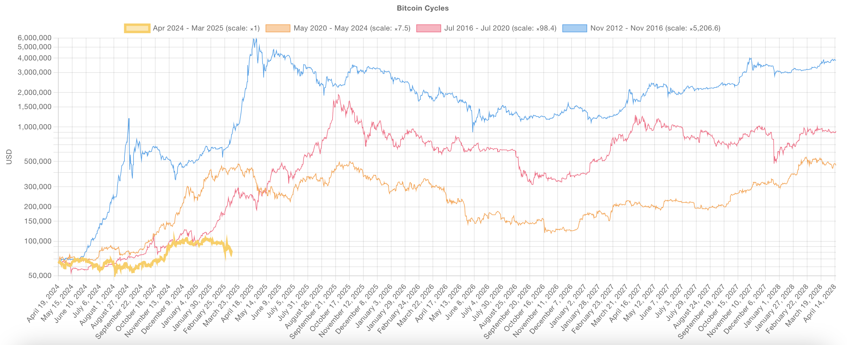 Институционалдық қабылдау, Трамптың криптоға деген ұстанымы және геосаяси шиеленістер сияқты жаңа факторлар тарихи салыстыруларды сенімсіз етеді. Өткен циклдерден айырмашылығы, Bitcoin бағасының әрекеті айқын пост-халвинг раллиін ұстанбайды.