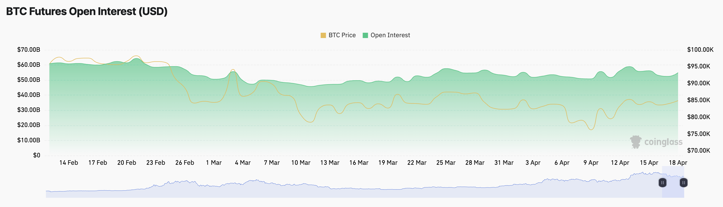 BTC-тің ашық қызығушылығы оның бағасымен бірге өскенде, бұл нарыққа жаңа ұзақ немесе қысқа позицияларды ашып жатқан трейдерлердің көп екенін көрсетеді. Бұл жетекші монетаға қатысты алыпсатарлық белсенділіктің артқанын көрсетіп, инвесторлардың қызығушылығының өскенін растайды.