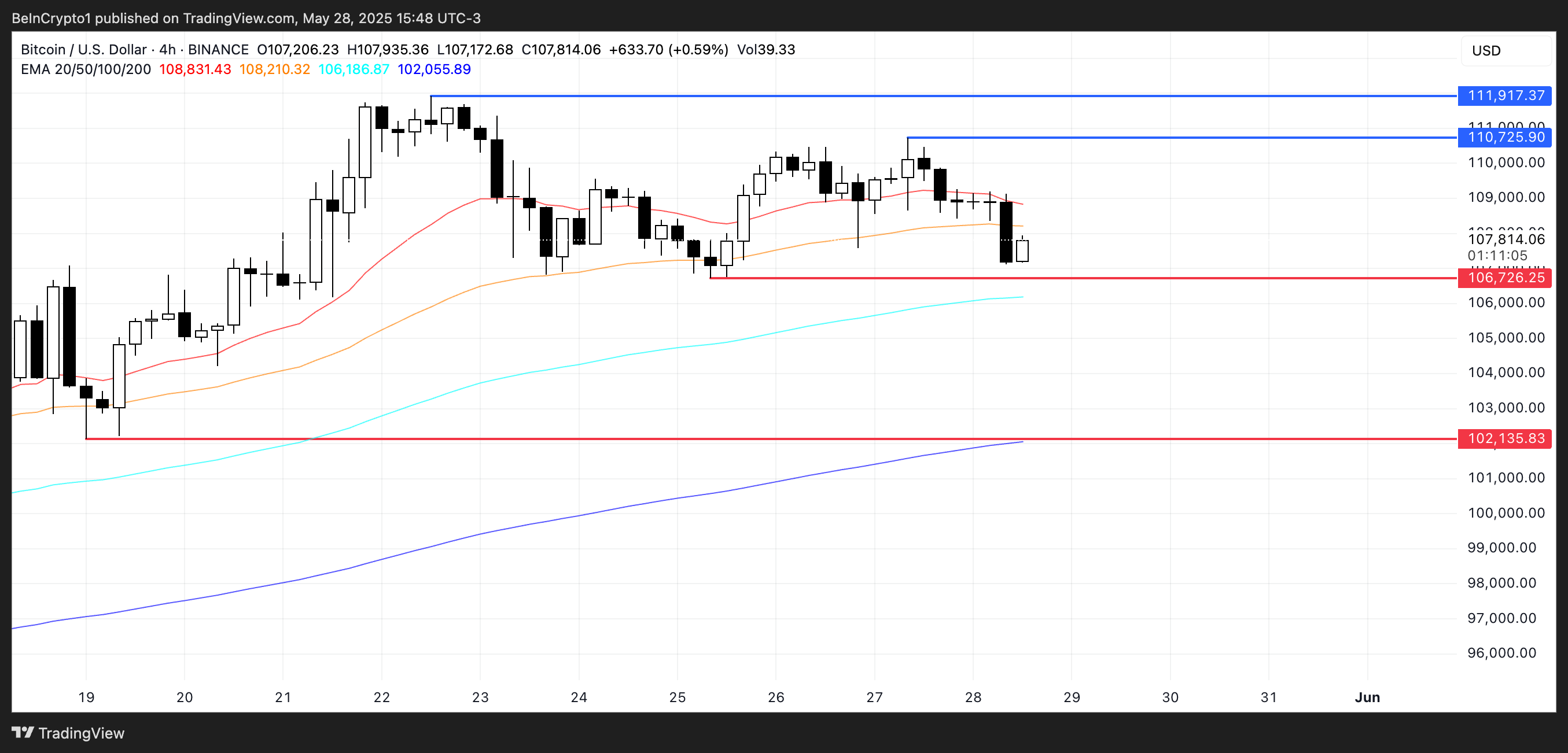Керісінше, егер сатып алушылар бақылауды қалпына келтіріп, импульс қалпына келсе, BTC 110 725 доллар шамасындағы қарсылықты қайта сынауы ықтимал.