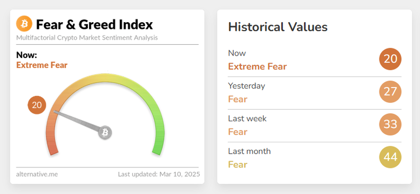 Крипто нарығындағы көңіл-күй шектен тыс қорқынышқа түсті. Өткен жылы 92+ деңгейіне жеткен Crypto Fear & Greed Index қазір тек 17-де тұр. Бұл өзгеріс цифрлық активтерден айтарлықтай капиталдың шығуымен туындаған кең нарықтық түзетуді көрсетеді.