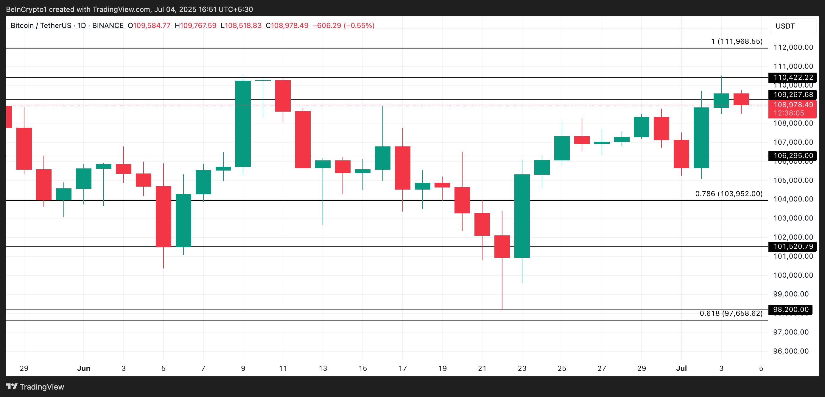 Жариялау кезінде BTC 108 978 доллардан саудаланып, соңғы жоғары деңгейлерінен сәл төмен тұр. Алайда, нарық бүгінгі күні кит әмияндарынан 20 000 BTC қозғалысынан кейін әлі де алаңдаулы.