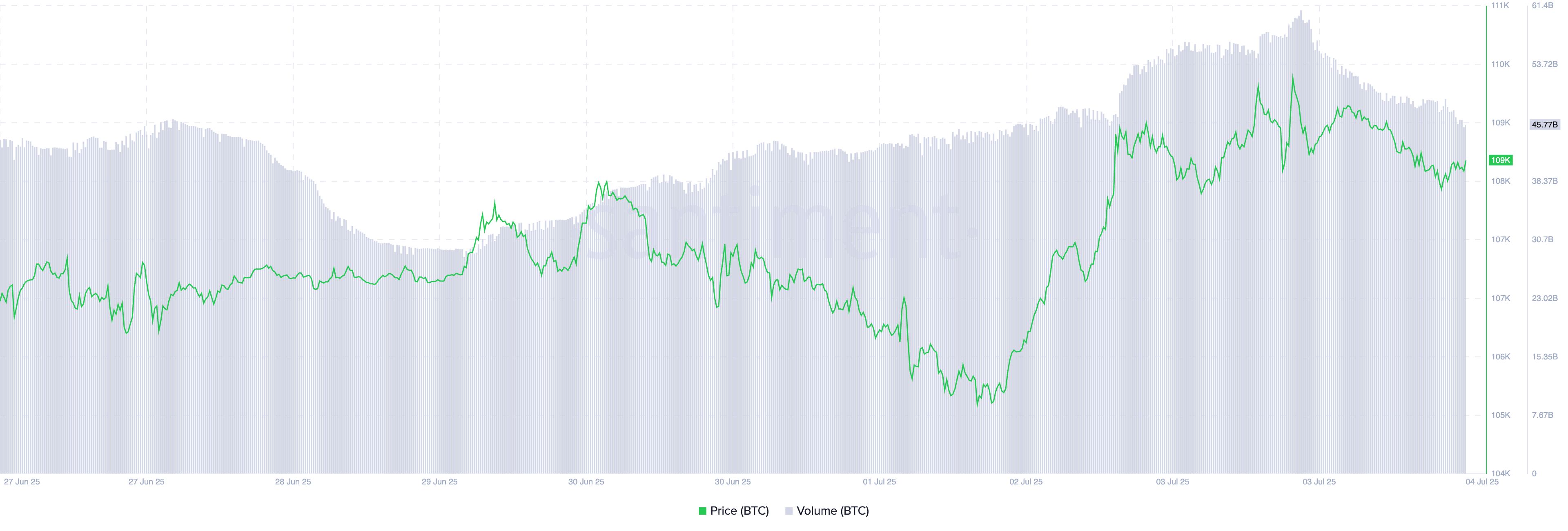 Сауда көлемінің төмендеуі мен бағаның құлдырауы нарық сенімінің әлсірегенін көрсетеді. Мұндай жағдайларда сатушылар басым болады. Бұл динамика BTC-нің одан әрі құлдырауына жол ашады, өйткені төмен көлем өтімділіктің аздығын білдіреді, бұл монетаның бағасын ірі сатылымдарға сезімтал етеді.