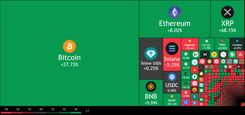 Биткоин, Эфириум және XRP сияқты ірі капитализациялы криптовалюталардың өсуі инвесторлар реттеушілік айқындылықты тәуекелді альткоиндерден артық көрген кезде орын алуда.