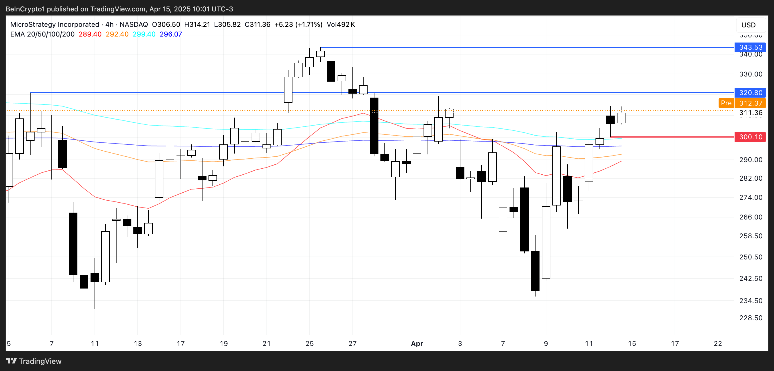MicroStrategy (MSTR) кеше 3,82%-ға өсіп, жыл басынан бергі қайтарымын 7,54%-ға жеткізді. Акция Bitcoin-ның соңғы баға қалпына келуімен бірге күшті импульс көрсетті, MSTR бағасы соңғы 5 күнде 16%-ға өсті.