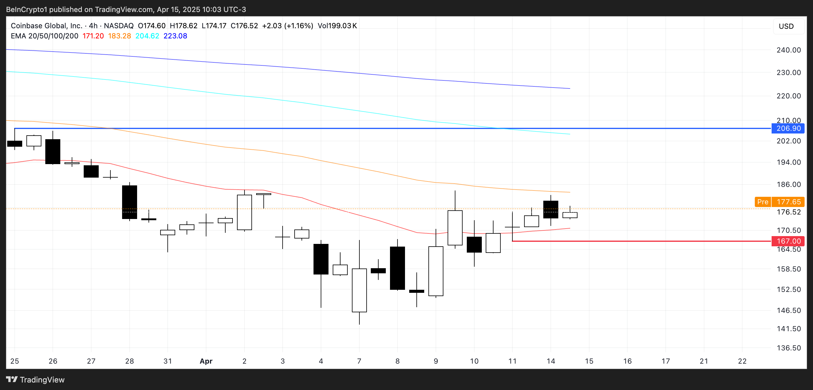 COIN соңғы бес күнде 12%-ға өсті, жыл басынан бері шамамен 29%-ға төмендегеннен кейін қалпына келуге тырысуда.