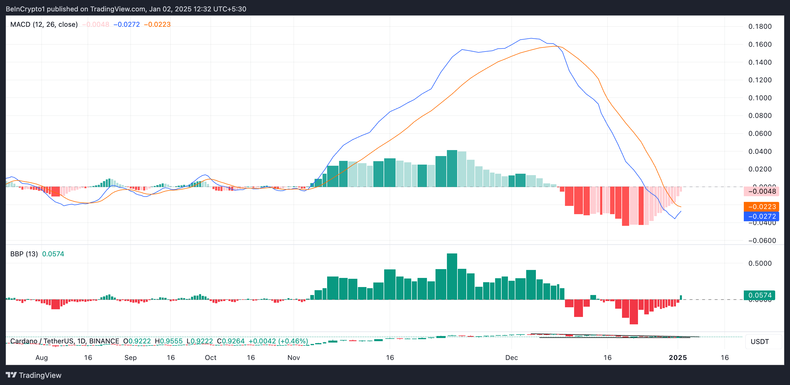 ADA күнделікті диаграммасынан алынған мәліметтерге сәйкес, бұл бұзу жақын арада сатып алу қысымы күшейген сайын орын алуы мүмкін. Мысалы, монетаның Elder-Ray индексі 13 желтоқсаннан бері алғаш рет оң мәнге оралды, бұл аюлы болжамды одан әрі растайды. Бұл жазу кезінде индикатор 0,057 деңгейінде тұр.