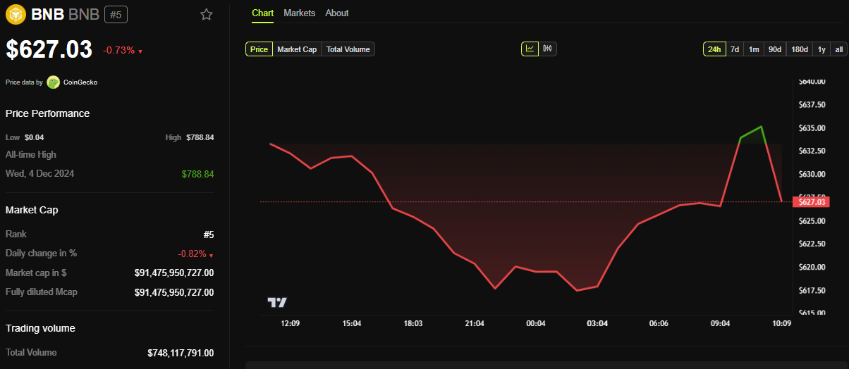 Осы жаңалық пен пайдалылықтың арту уәдесіне қарамастан, BNB бағасы төмендеуді жалғастыруда, соңғы 24 сағат ішінде шамамен 1%-ға төмендеді.