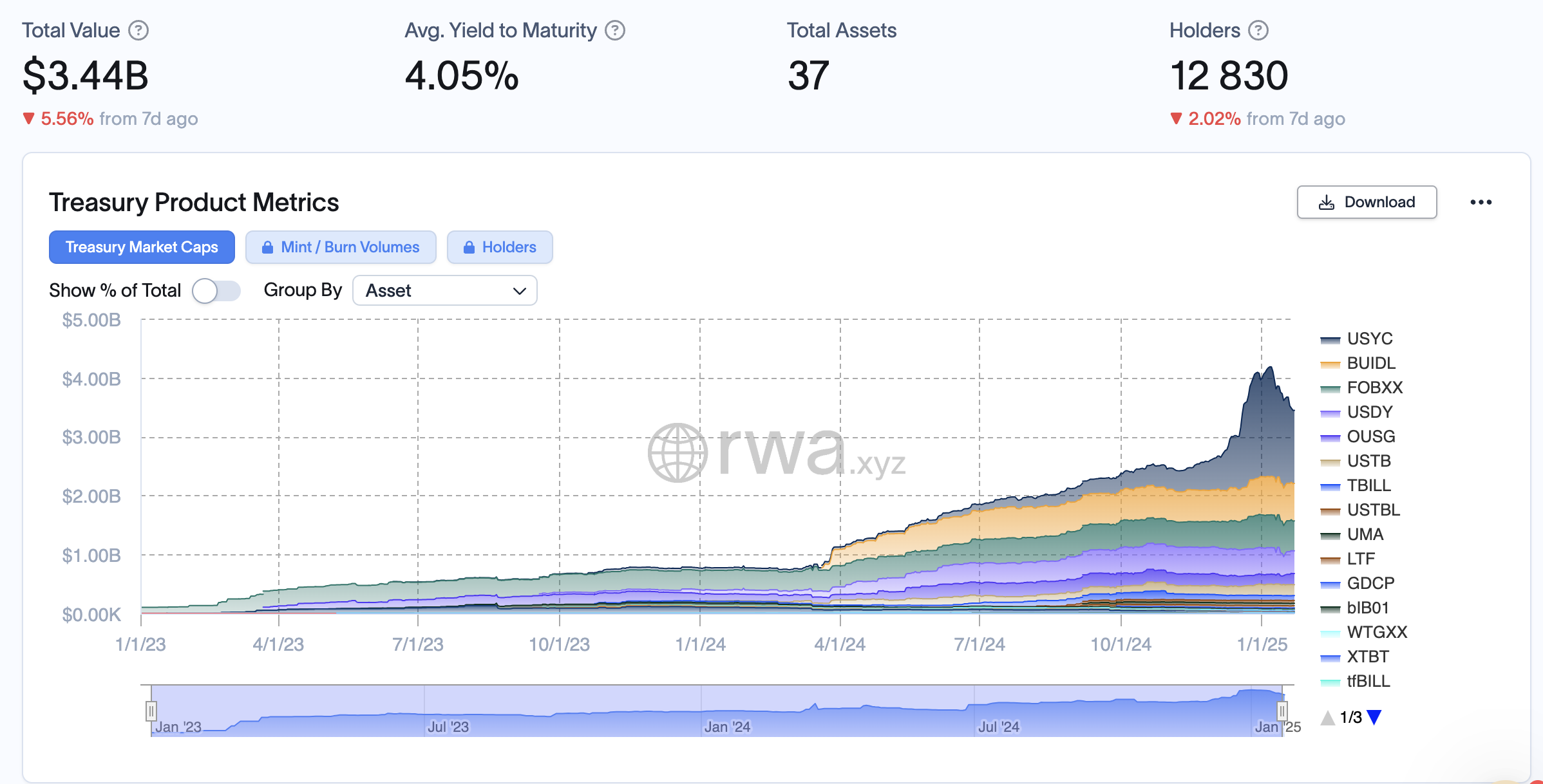RWA.xyz мәліметі бойынша, USYC әлемдегі ең ірі токенделген қазынашылық және ақша нарығы қоры болып табылады, 1,52 млрд доллар құрайтын активтерді басқарады.