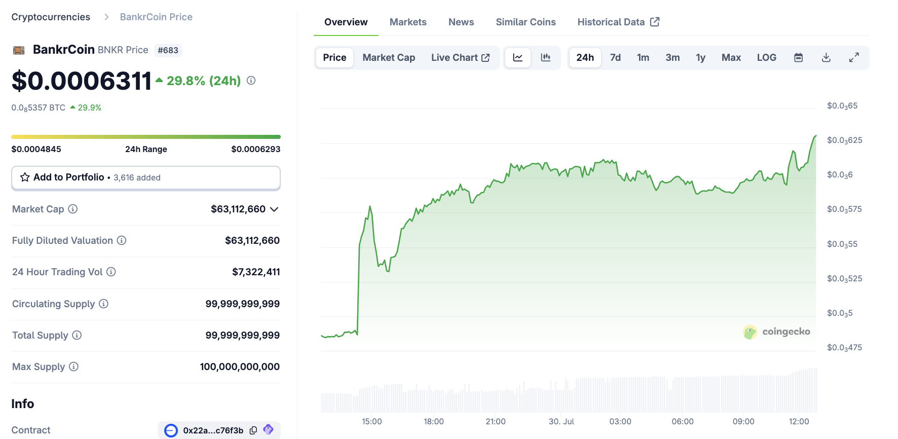 Әдеттегідей, Coinbase өз портфеліне әртараптандырылған активтер жиынтығын қосуға дайындалуда. Біріншісі – BankrCoin (BNKR), ол алдыңғы листинг хабарландыруынан кейін күрт өсті:
