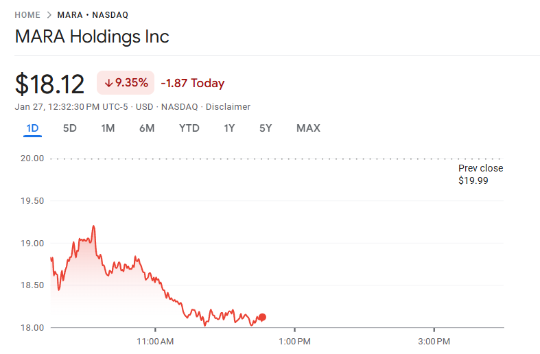 DeepSeek-тің келуі тек Nvidia-ға зиян келтіріп қана қоймай, Marathon және RIOT сияқты майнинг акцияларының да үлкен құлдырауына себеп болды. Бұл компаниялар Nvidia аппараттық құралдарын кеңінен қолдануды талап етеді.