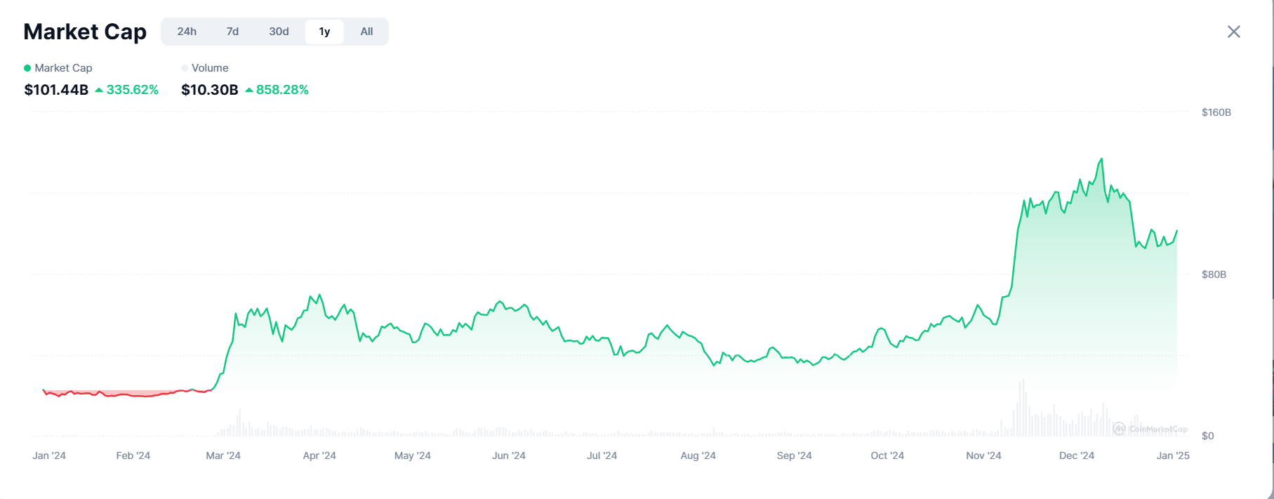 2024 жылы мемуарлар секторы тамаша өсімді байқады, оның жалпы нарықтық қалпы 2024 жылғы қаңтарда $20 млрд-тан желтоқсанға қарай $120 млрд-тан астамға дейін кеңейді. Бұл 500% өсім мемуар монеталарын заңды деп танудың өсіп келе жатқанын көрсетеді.