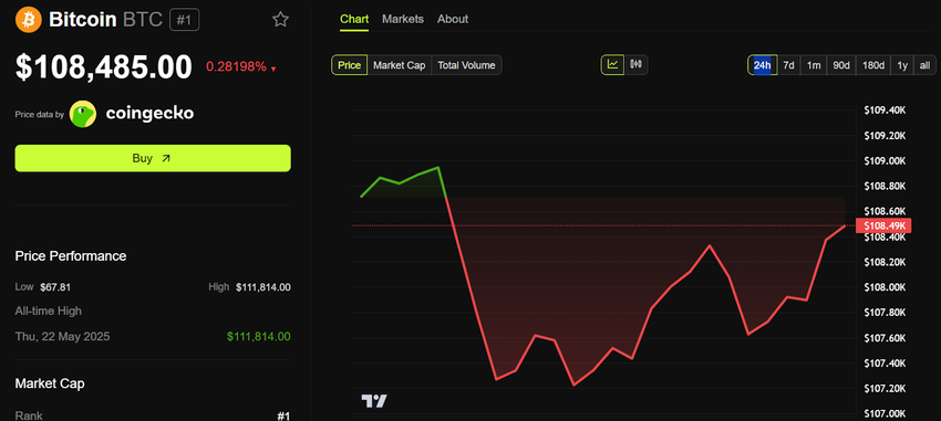 Дегенмен, Bitcoin қаржылық белгісіздік жағдайында айқын жеңімпаз болып көрінеді, бұл жазу кезінде 108 485 долларға саудалануда.