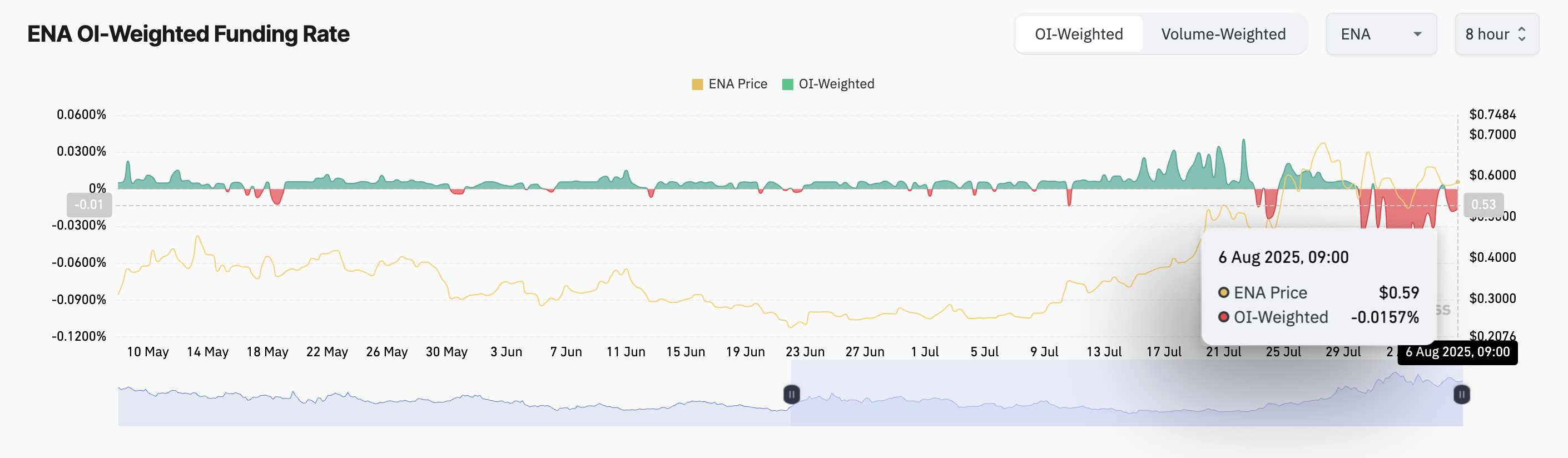 ENA үшін теріс қаржыландыру мөлшерлемесі аю көңіл-күйінің деривативтер нарығында басым екенін көрсетеді, әрі қарай шығындардың күтілетінін күшейтеді.