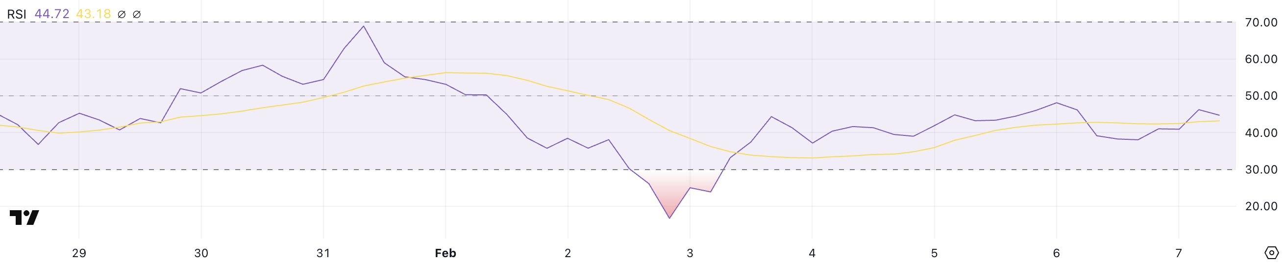 Ethereum-ның Салыстырмалы Күш Индексі (RSI) қазіргі уақытта 44,7 деңгейінде, 2 ақпанда 16,7-ге қысқа уақытқа төмендегеннен кейін 3 ақпаннан бері бейтарап күйде сақталуда. RSI – бұл 0-ден 100-ге дейінгі шкала бойынша баға қозғалысының күшін және жылдамдығын өлшейтін импульс осцилляторы.