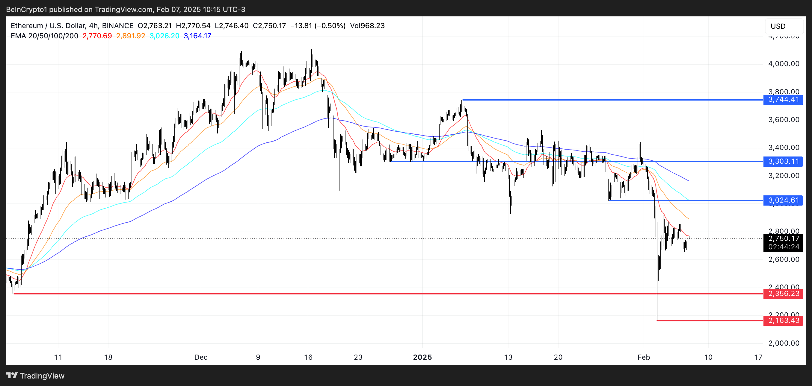 Егер бұл аюлы импульс сақталса, Ethereum бағасы 2 356 доллар деңгейіндегі қолдау деңгейін сынауы мүмкін, және бұл аймақты ұстай алмау 2 163 долларға қарай тереңірек төмендеуге әкелуі мүмкін.