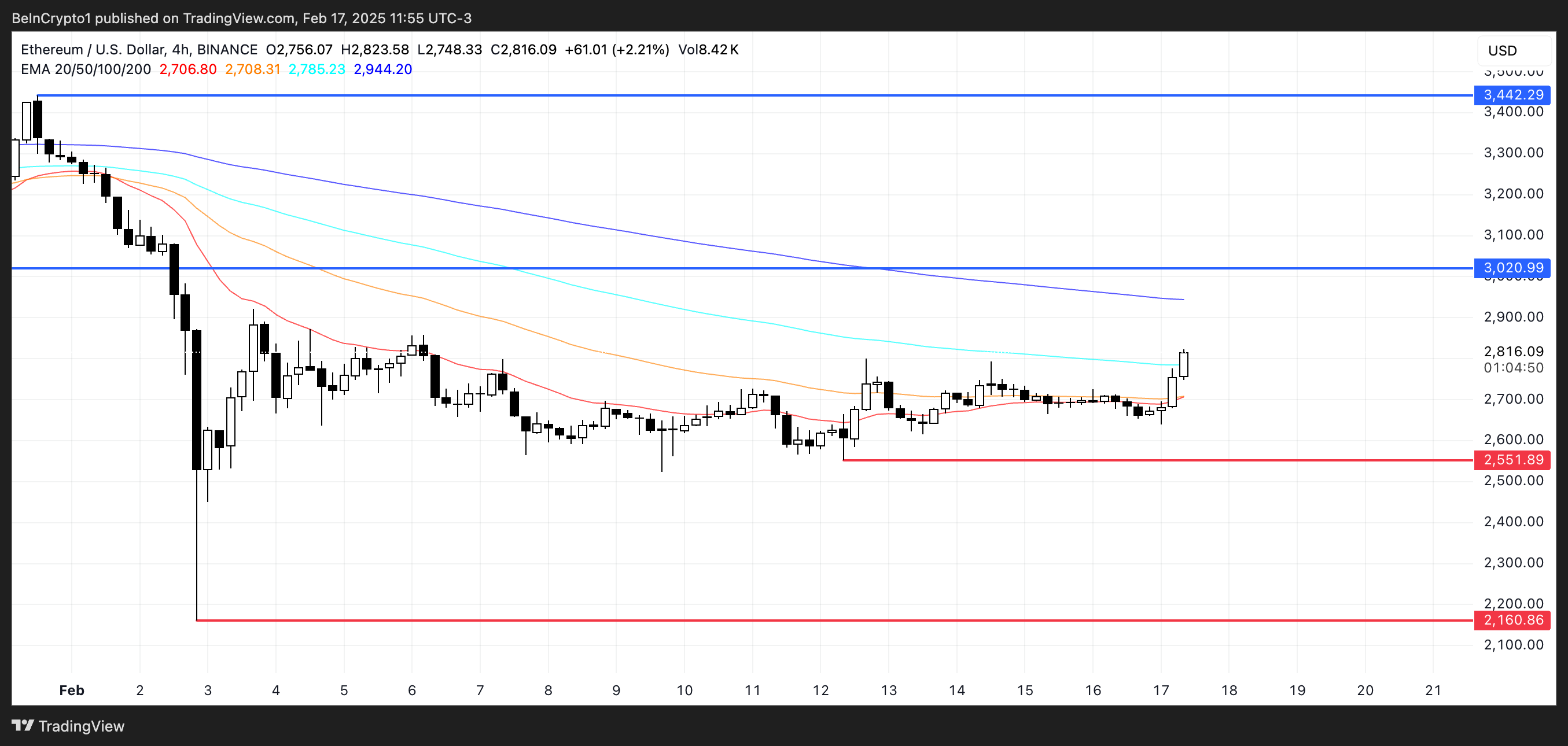 Екінші жағынан, егер төмендеу тренді күшейсе, Ethereum 2 551 доллардағы қолдауды қайта сынай алады.