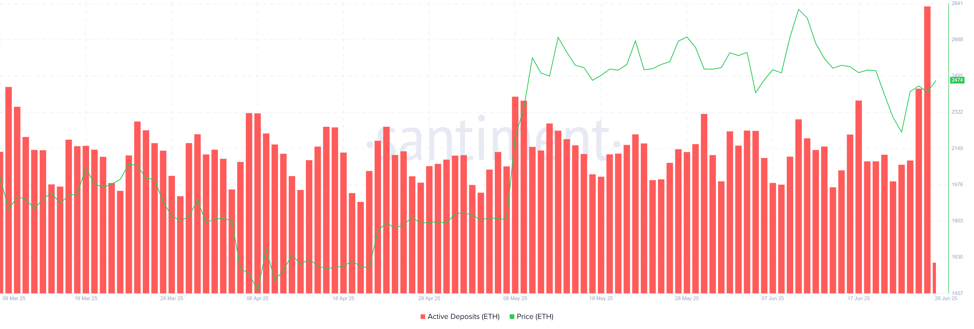 Ethereum желісіндегі белсенді депозиттер соңғы 24 сағат ішінде айтарлықтай өсті, бес айлық максимумға жетті. Депозиттердің бұл өсуі инвесторлардың, әсіресе қысқа мерзімді иелердің, Ethereum-ның соңғы баға өсуінен пайда табуға ұмтылатынын көрсетеді. Бұл аптада альткоиннің өсуін пайдаланып жатқан қысқа мерзімді иелер болуы ықтимал.