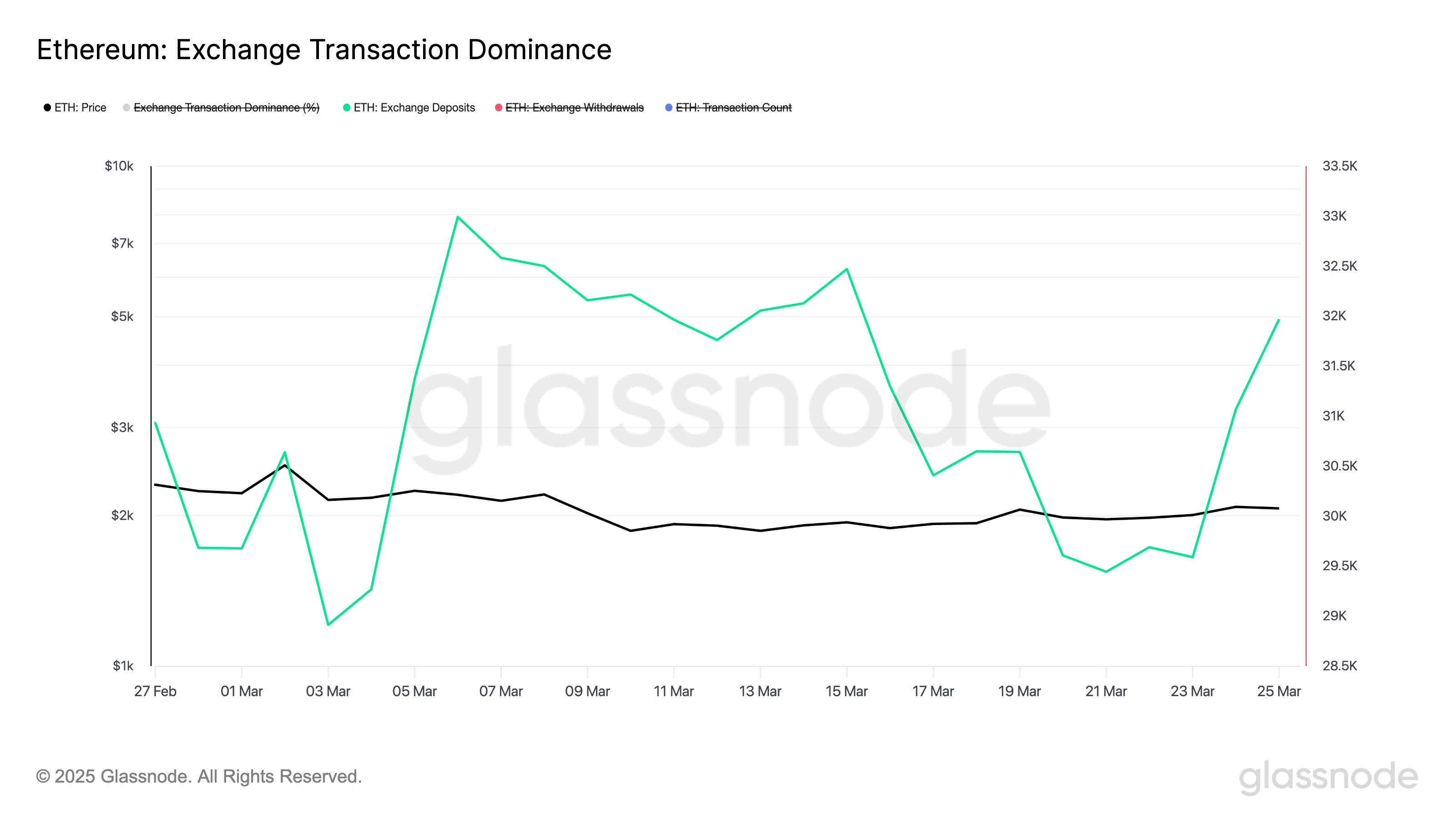 Сонымен қатар, ETH депозиттері өсті, бұл нарықтағы сату қысымының артуын растайды. Glassnode мәліметтері бойынша, биржаларға жіберілген ETH монеталарының саны наурыздың басынан бері 10% өсті.