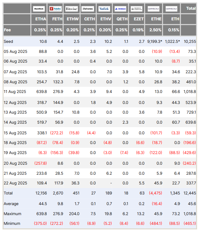 Farside Investors деректері бойынша, 22 тамыз аптасында инвесторлар өнімдерден 241 млн долларды алып тастады, аптаның соңындағы сұраныстың қалпына келуі жалпы әсерді жұмсартты.