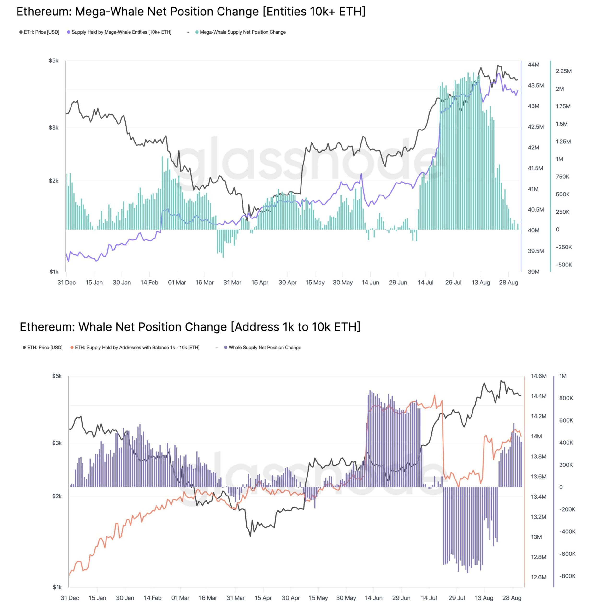 «Тамыз айында ETH-тің ең ірі иелері қарама-қарсы бағытта қозғалды», – делінген жазбада.
