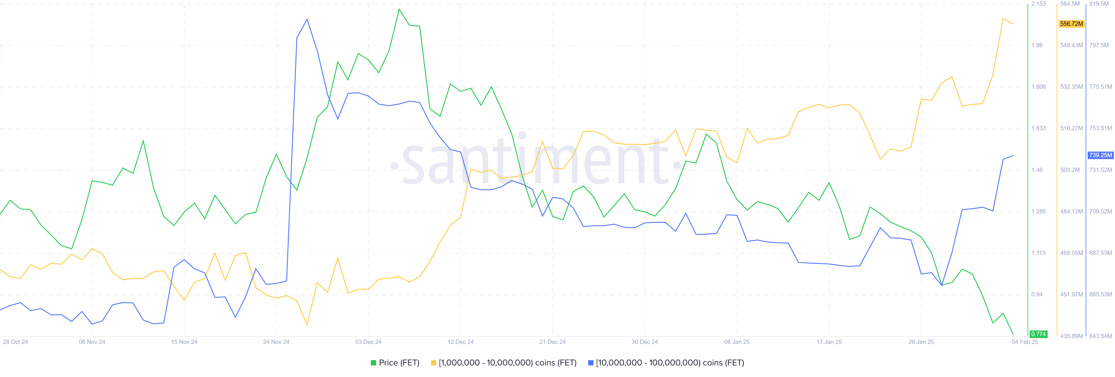 Кең таралған шығындарға қарамастан, киттердің белсенділігі айтарлықтай өсіп отыр. 1 млн мен 100 млн FET аралығында ұстайтын мекенжайлар өткен аптада өз активтеріне шамамен 92 млн FET қосты, құны шамамен 70,8 млн доллар.Бағаның төмен деңгейінде жинақтау киттердің әлеуетті қалпына келтіруге дайындалып жатқанын және FET-тің ұзақ мерзімді әлеуетіне деген сенімділікті білдіреді.