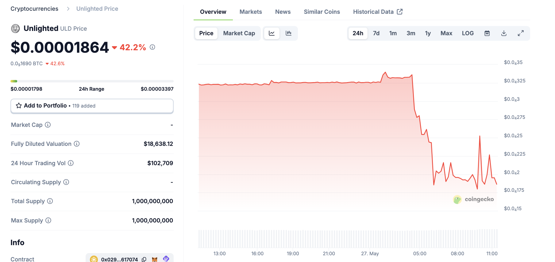 Бұл активтердің көпшілігі кейіннен толықтай құлдырады, Unlighted (ULD) 40%-дан астамға төмендеді.
