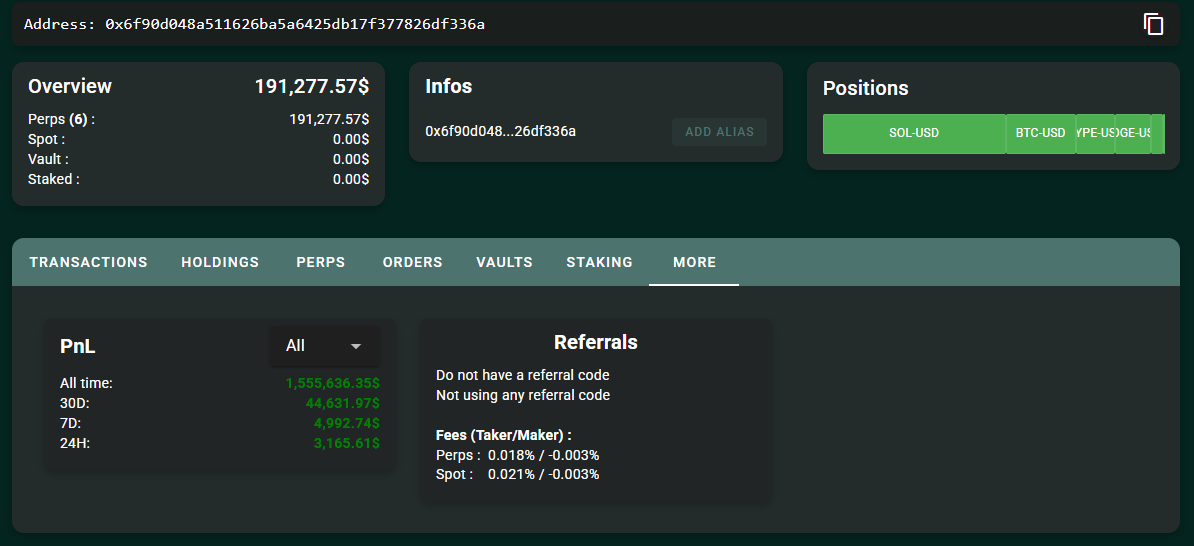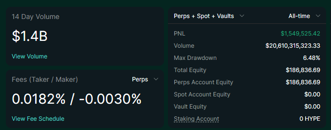 Hyperliquid платформасында мейкер жеңілдігі қазіргі уақытта –0,0030%, яғни трейдерлер әр 1 000 доллар көлеміне 3 цент алады. Бұл аз болып көрінгенімен, ауқыммен тез жиналады.