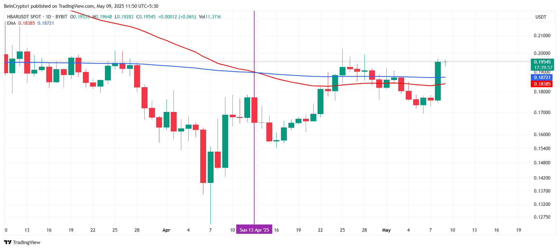 Альткоиннің өсуі кеңірек нарықтық өзгеріспен қолдау тауып, HBAR-ды ықтимал серпіліске дайындап отыр. Бұл оның соңғы төмендеуінің аяқталуын және бағаның айтарлықтай қалпына келуін білдіруі мүмкін.